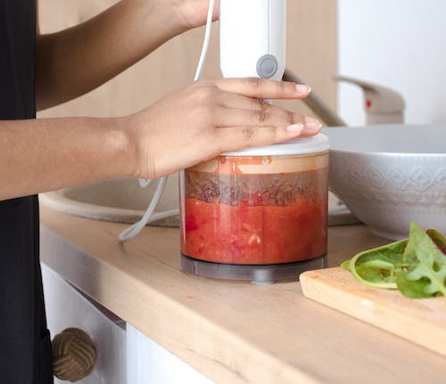 블렌더를 사용하는 경우: 사과, 비트, 당근 조각을 선택 사항인 물과 함께 블렌더에 넣습니다. 부드럽고 잘 섞일 때까지 블렌딩합니다.