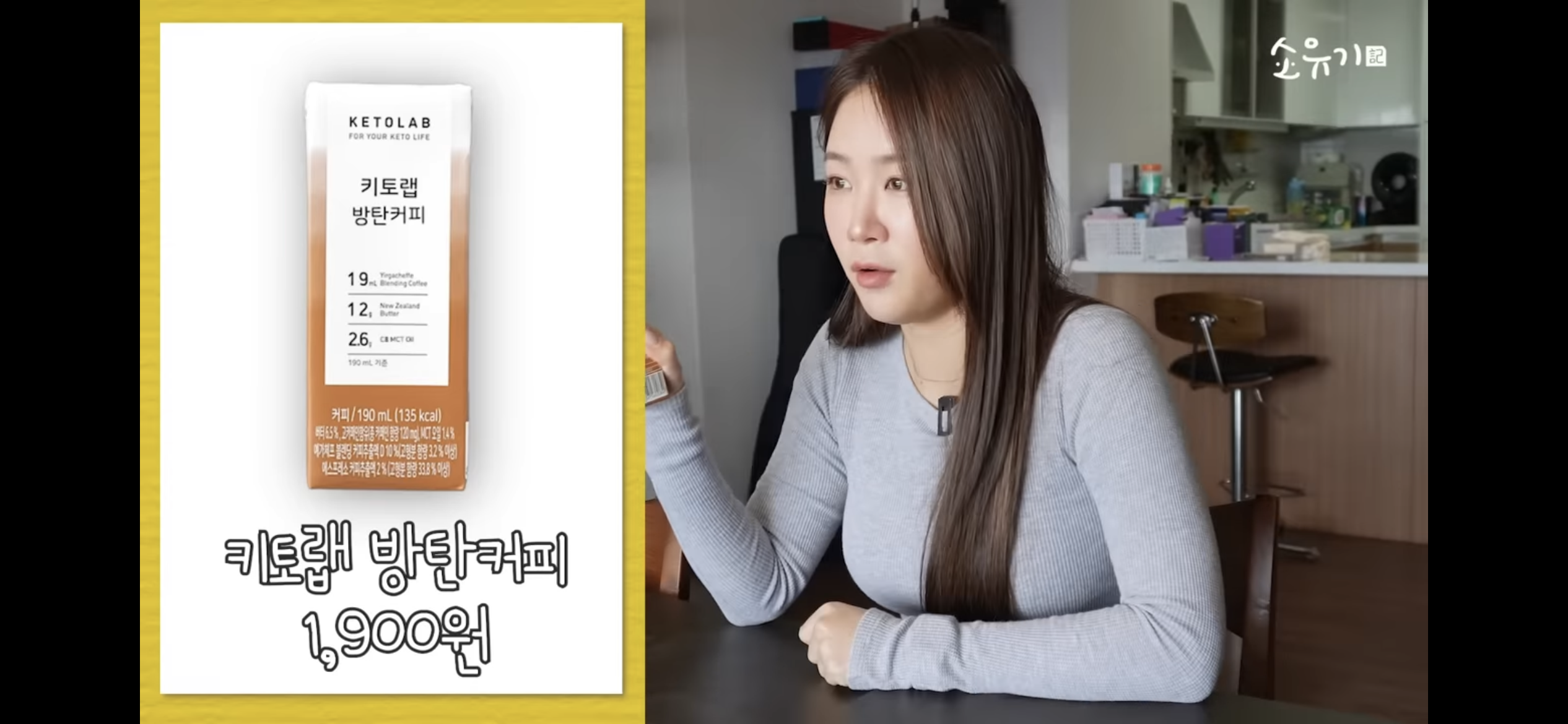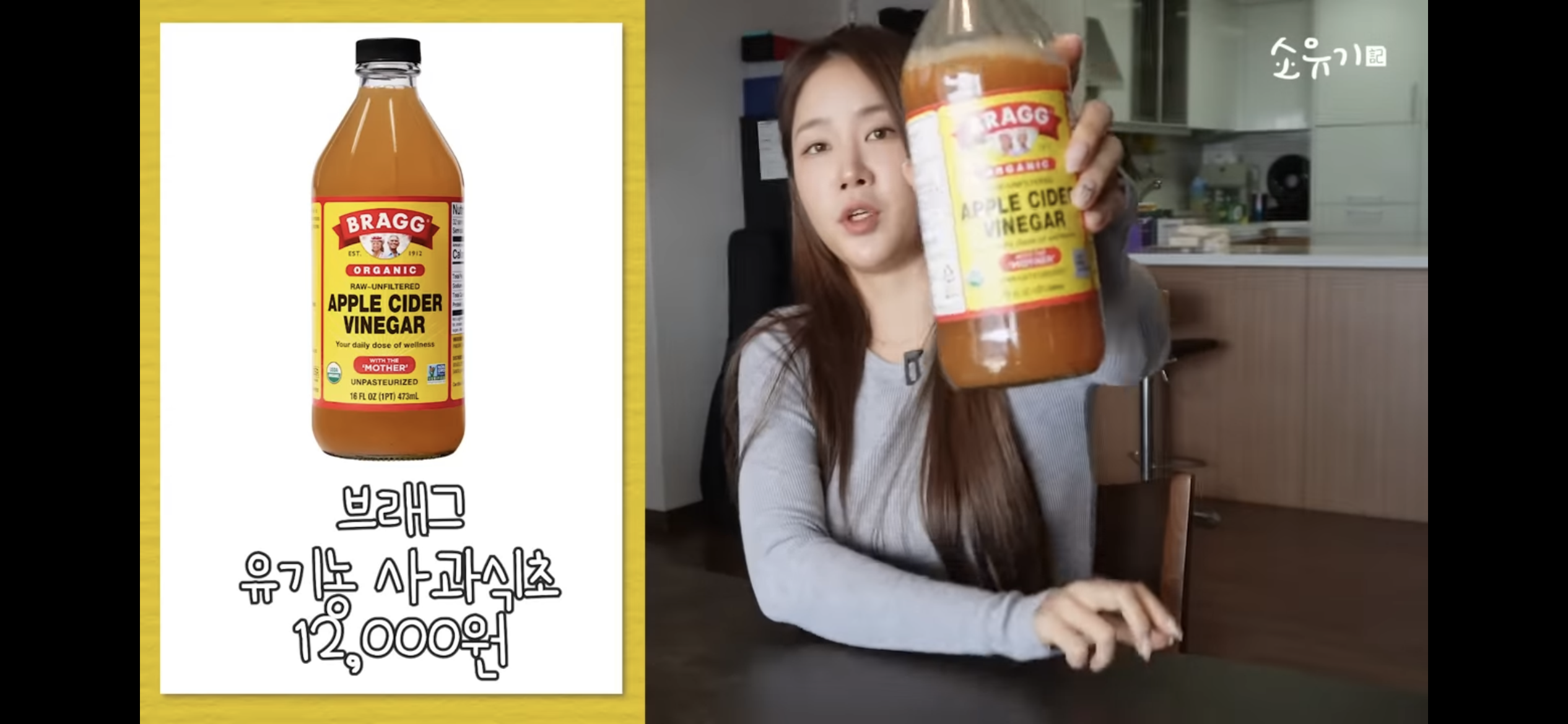 소유가 저탄고지를 하면서 도움을 받았던 제품들도 함께 소개했다. 첫번째는 키토랩 방탄커피. 아침 식단 사진을 보니 매일 이 커피가 보였다. 두 번째는 거의 모든 음식을 조리할 때 사용했던 무염 기버터. 그로브 아보카도 오일은 여러 음식에 듬뿍 뿌려 먹었다고 한다. 또한, 브래그 유기농 사과식초도 먹었는데, 탄산수에 식초를 타서 가지고 다니면서 하루 종일 마시니 좋았다고 한다.