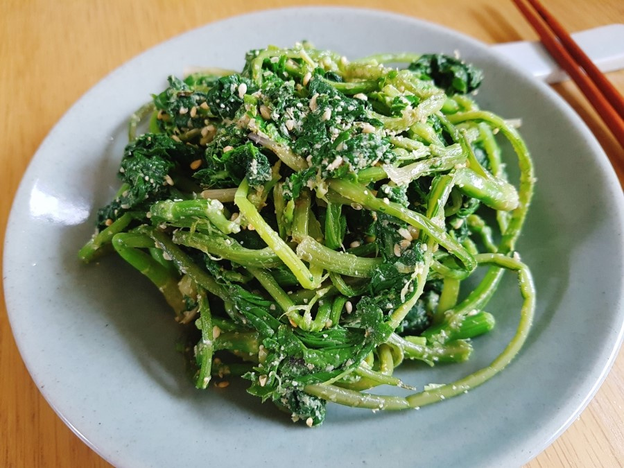 1. 취나물을 깨끗이 씻어 물기를 빼고 끓는 물에 1분간 데치세요.